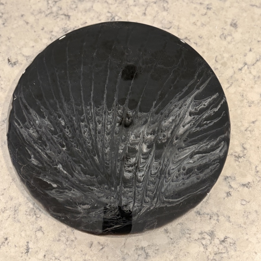 Pigmented Resin (Epoxy) on Steel Lazy Susan; 12" in diameter; 3/16" thick plate steel on a wooden base with a super-smooth and quiet turntable mechanism.