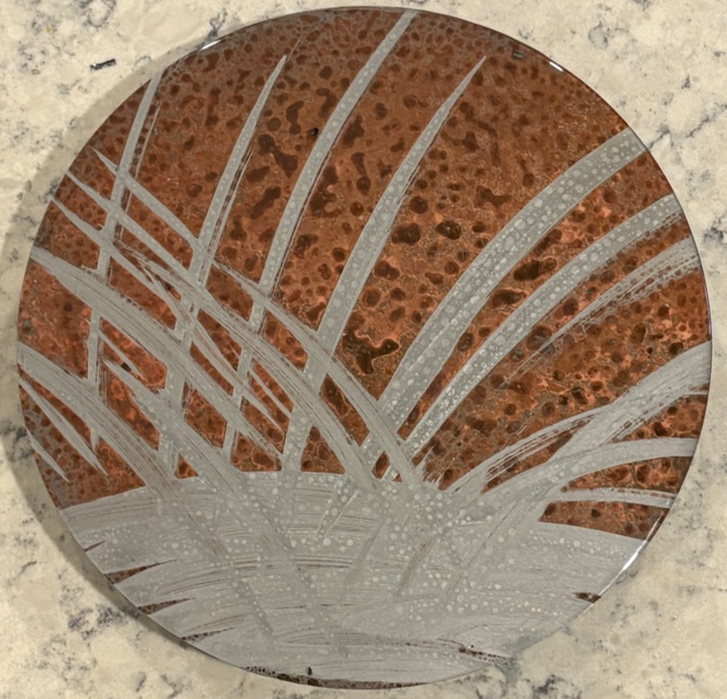 Pigmented Resin (Epoxy) on Steel Lazy Susan; 12" in diameter; 3/16" thick plate steel on a wooden base with a super-smooth and quiet turntable mechanism.