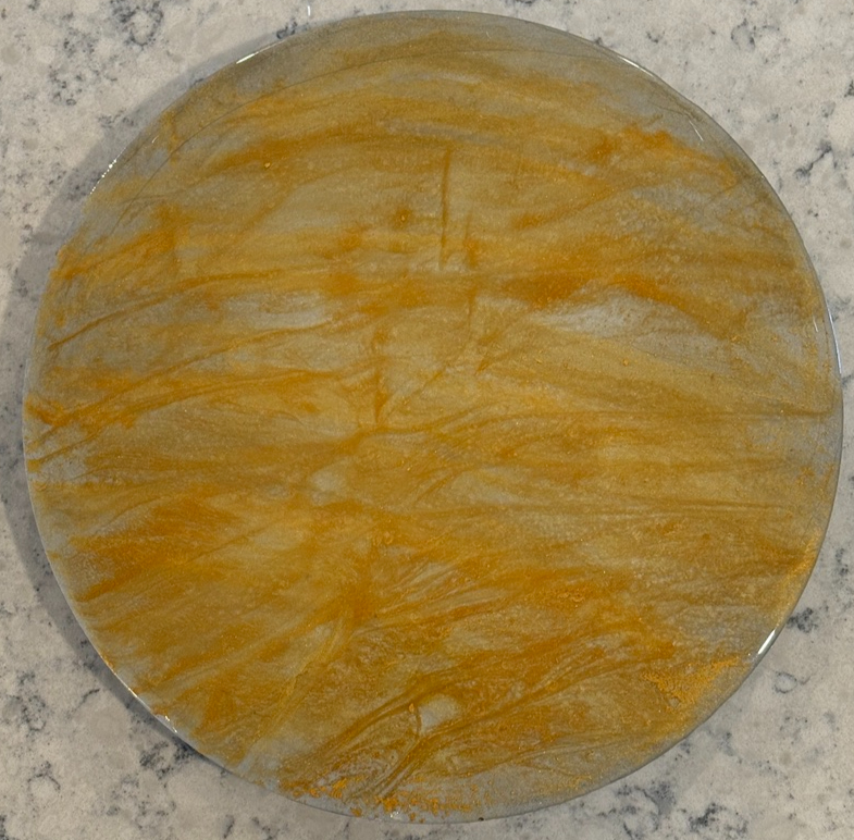 Pigmented Resin (Epoxy) on Steel Lazy Susan; 12" in diameter; 3/16" thick plate steel on a wooden base with a super-smooth and quiet turntable mechanism.