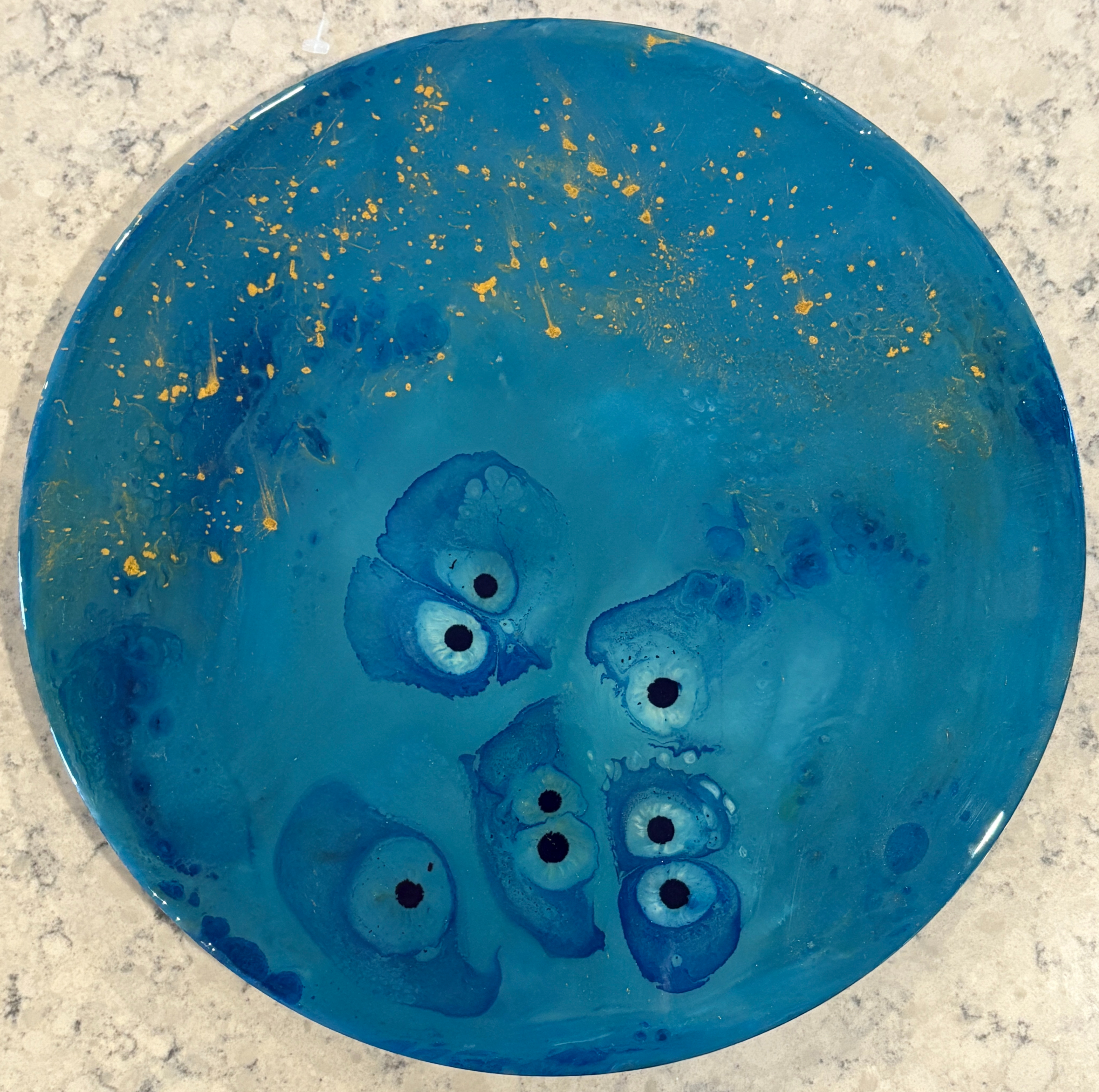 Pigmented Resin (Epoxy) on Steel Lazy Susan; 15" in diameter; 3/16" thick plate steel on a wooden base with a super-smooth and quiet turntable mechanism.